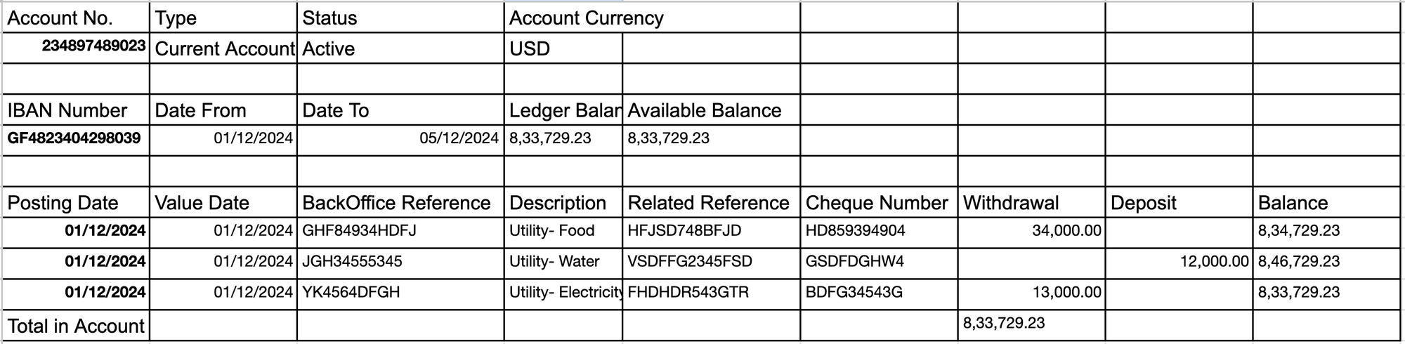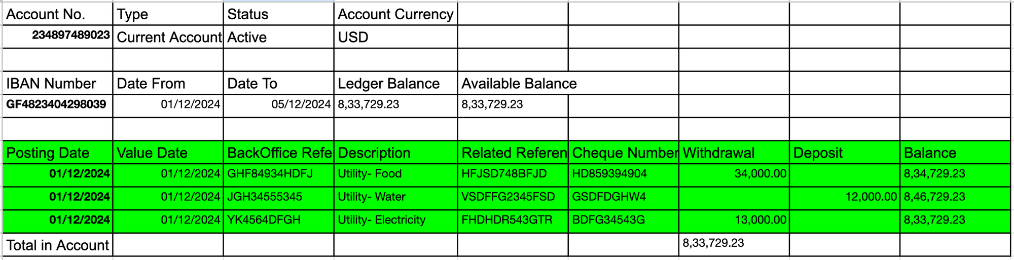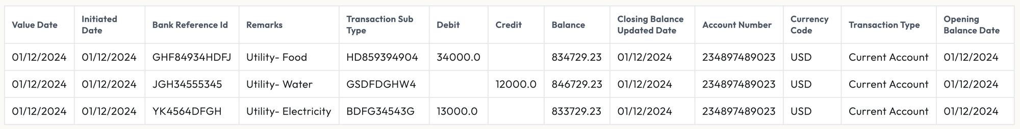Posted Date | Debit| Credit| Balance