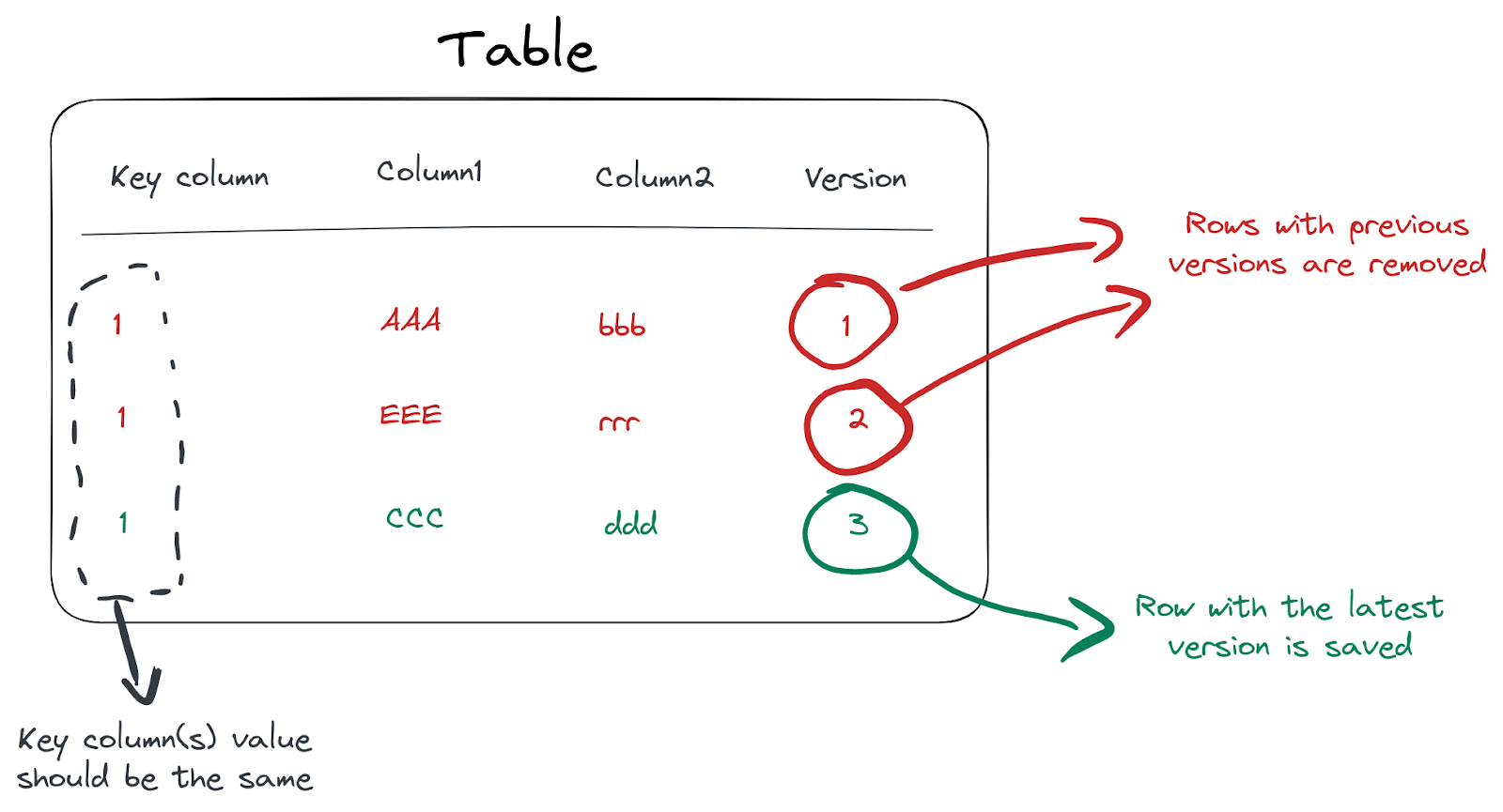 In our scenario, updates on a row would trigger a new entry in our CDC and a corresponding insertion into ClickHouse. This would have to go and replace the old r0w with the "new value".